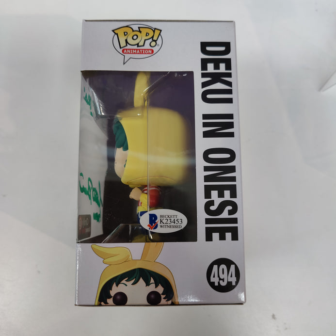 SIGNED Funko Pop! My Hero Academia Deku In Onesie #494 GameStop Exclusive JUSTIN BRINER BAS