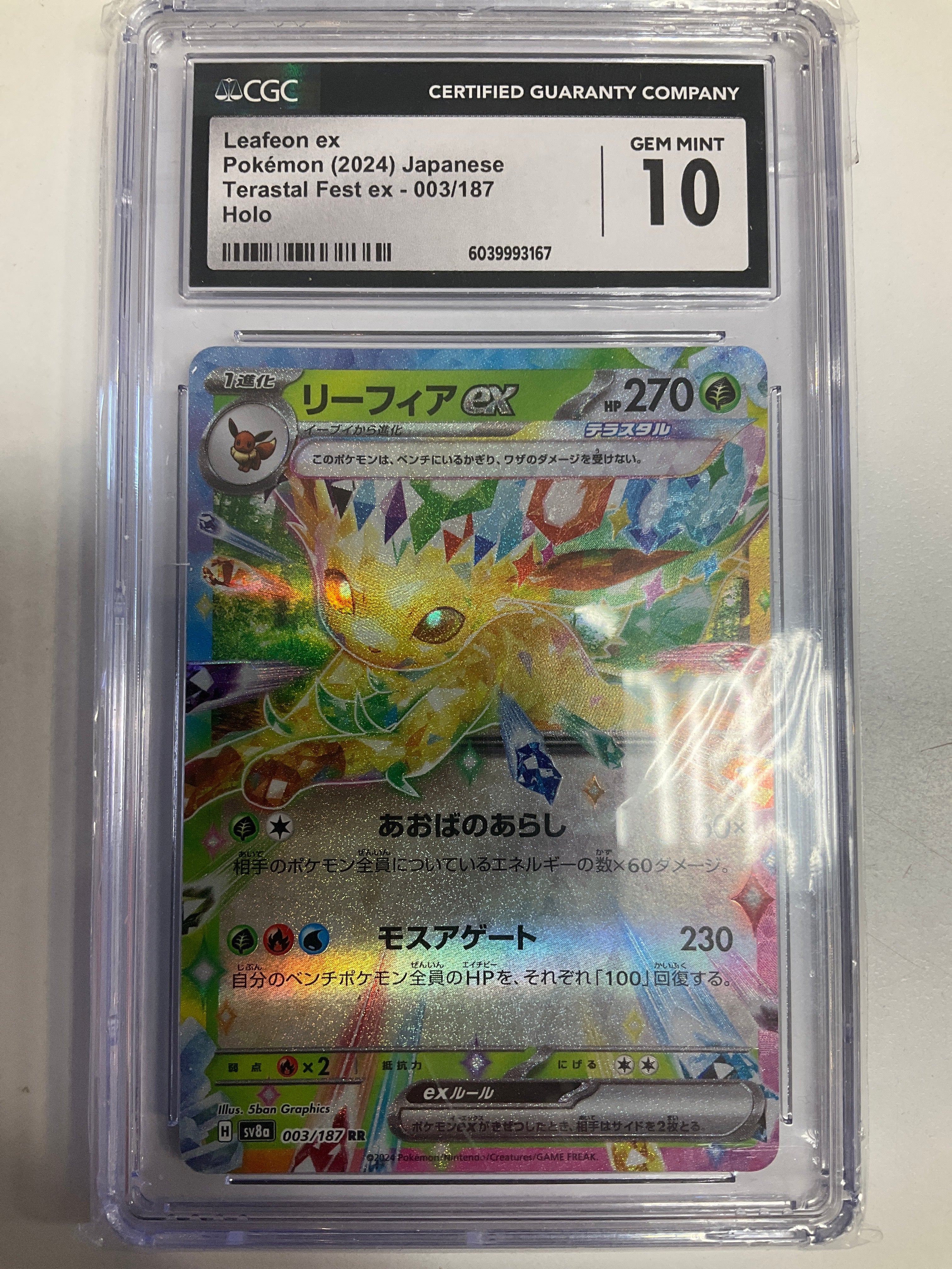 GRADED Japanese Pokemon TCG Leafeon Ex 003/187 sv8a CGC 10