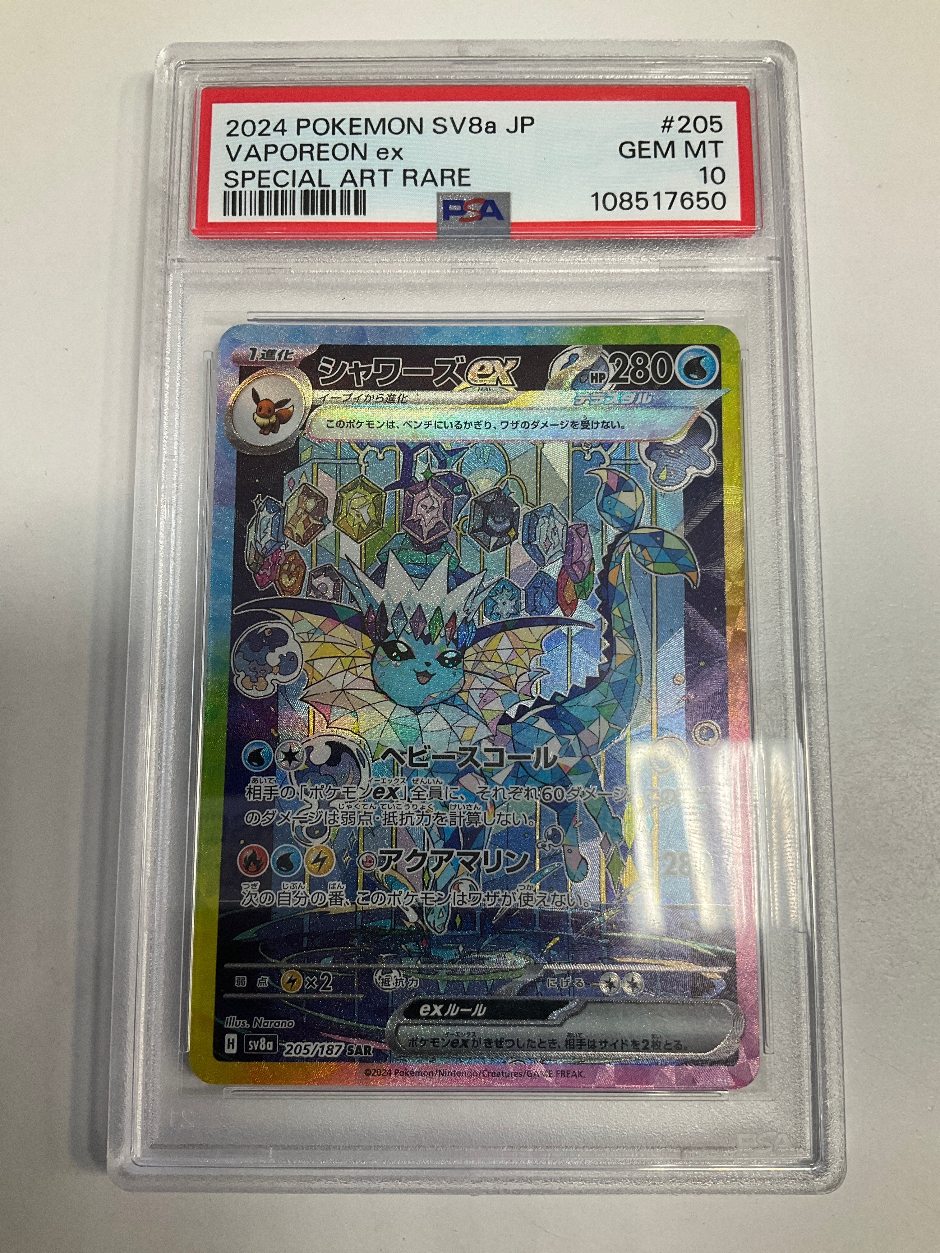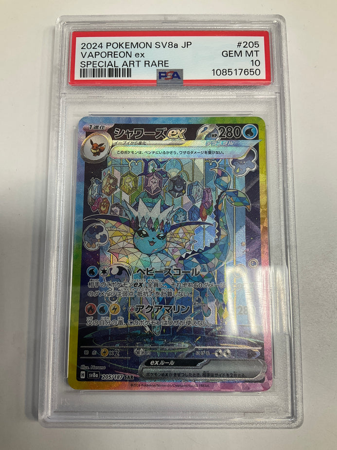 GRADED Japanese Pokemon TCG Vaporeon Ex 205/187 sv8a Alt Art PSA 10