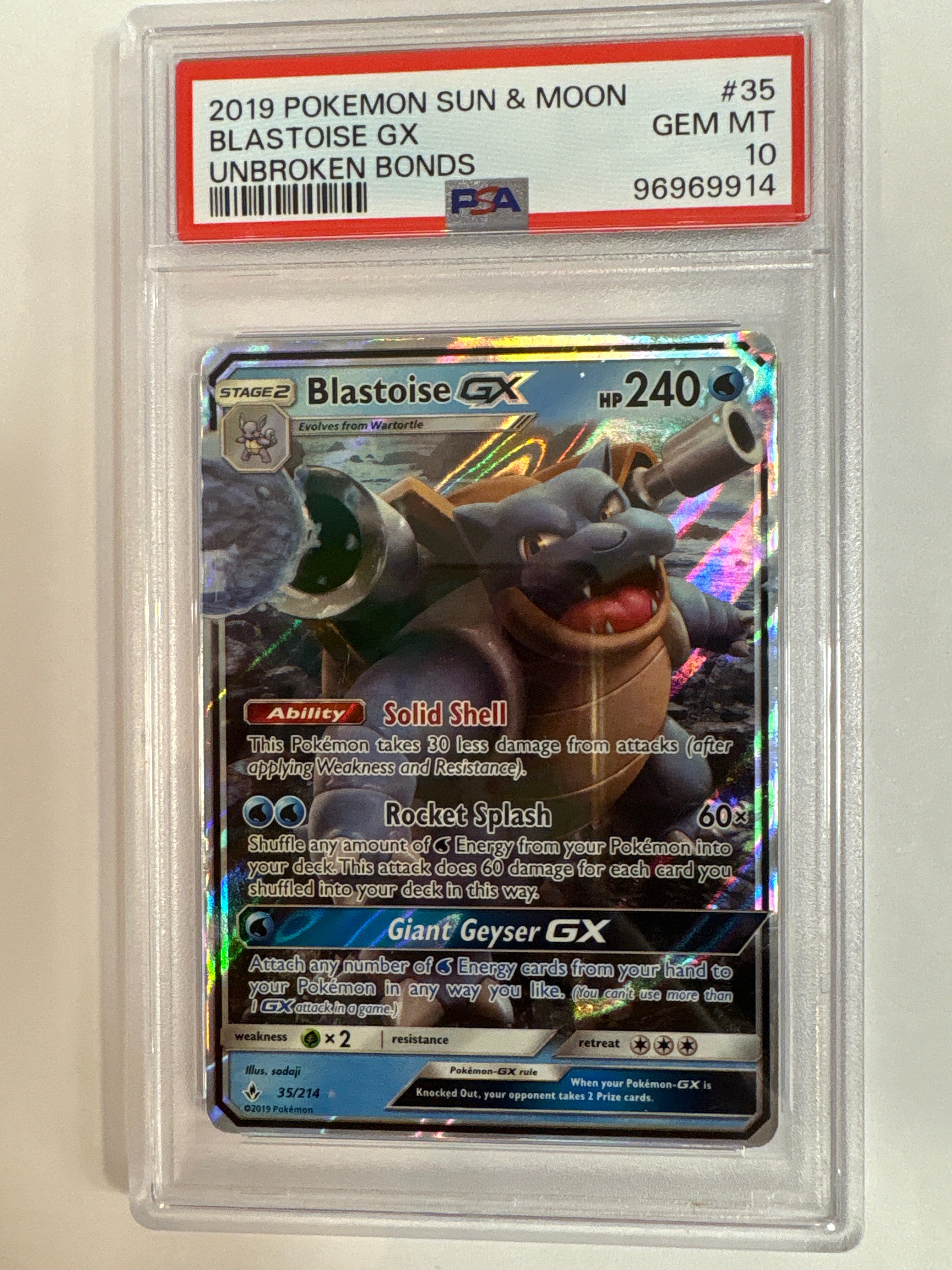 GRADED Pokémon TCG - Unbroken Bonds Blastoise GX 35/214 GEM pSA 10