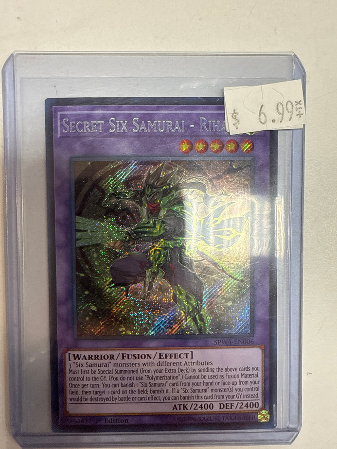 Yugioh TCG Secret Six Samurai - Rihan SPWA-EN006 Spirit Warriors Secret Rare NM